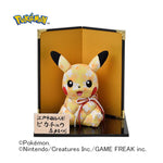 伝統工芸ならではの花柄の和人形衣裳で表現し、ピカチュウのもつ可愛らしさと真多呂ならではの優しい雰囲気を掛け合わせたピカチュウが誕生しました。大人の生活空間に置いていただいても、しっくりくる落ち着いた高級感のある仕上がりです。
