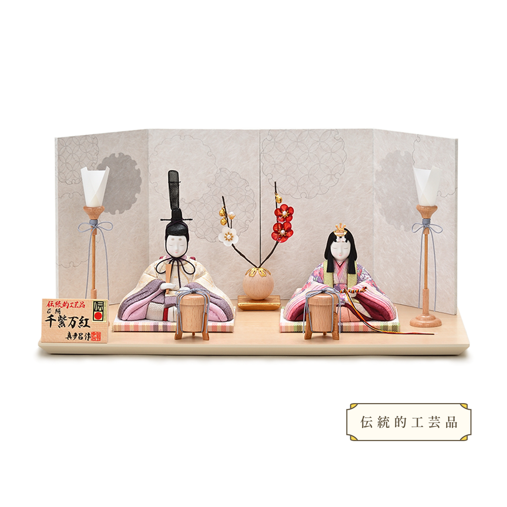 「千紫万紅」シリーズは、色とりどりの花柄衣裳をまとった親王雛をご用意しました。真多呂人形が自ら京都の織物屋と協力し、12種類の美しい花柄の布を制作。誕生月だけでなく、お好みの花柄をお選びいただけます。こだわり抜いた色彩豊かなお雛様を、ぜひお手元に。