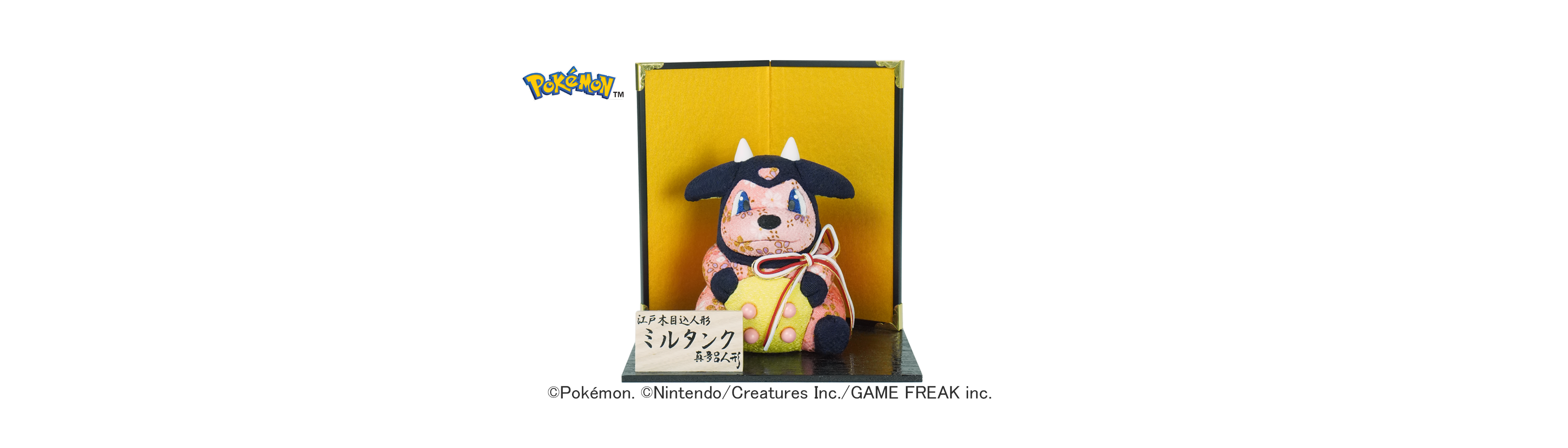 「ミルタンク」の可愛らしさを木目込人形で表現しました。