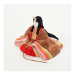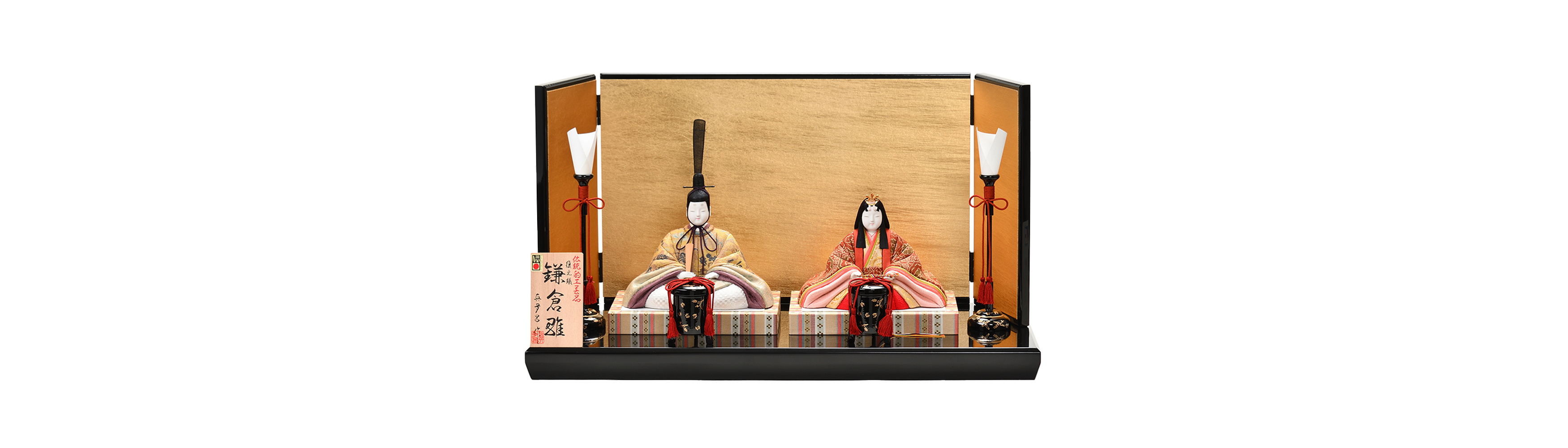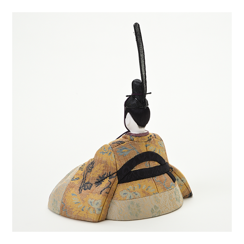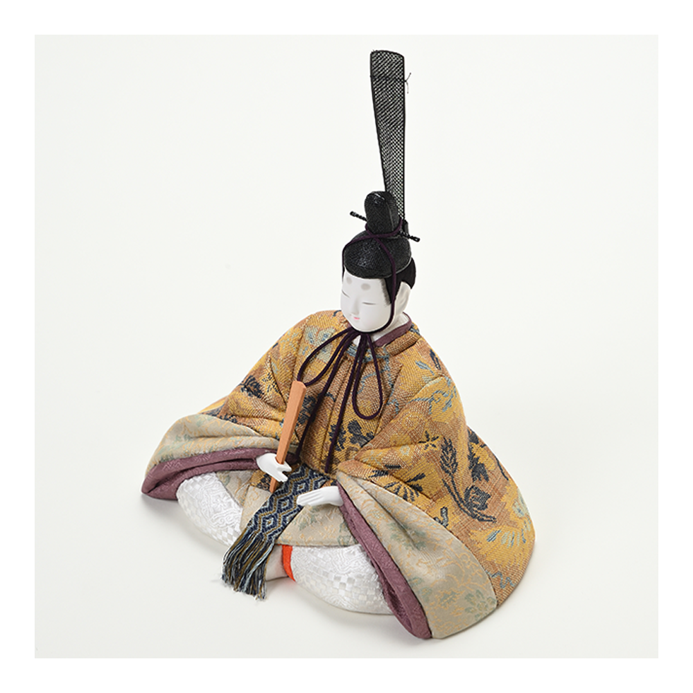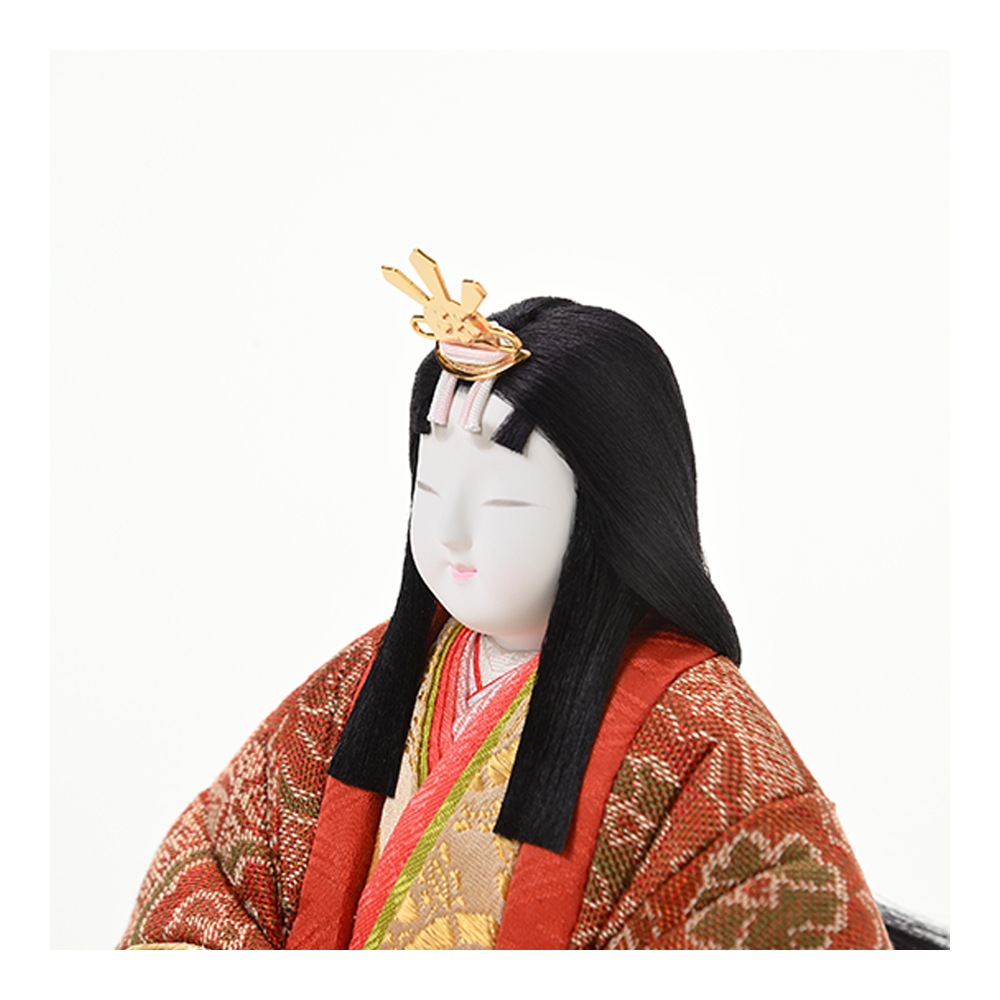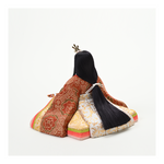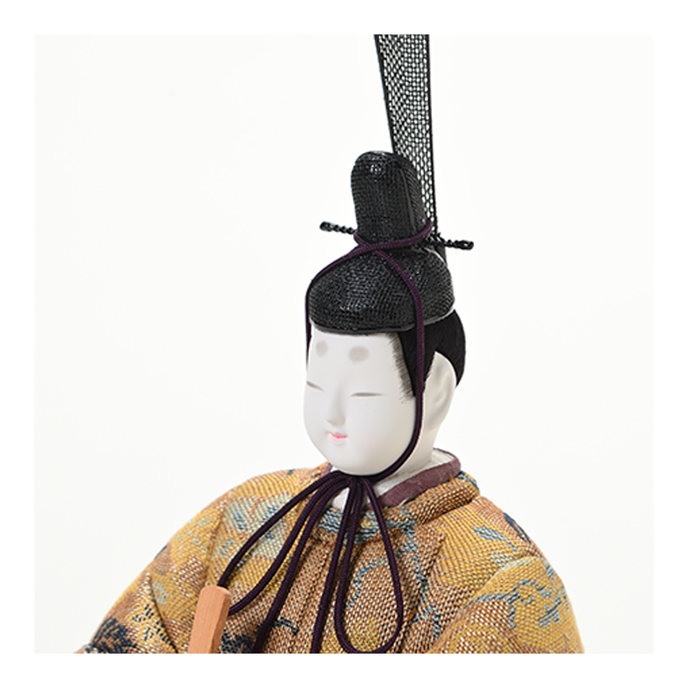復元織の特徴である落ち着いた色味と柄が、お部屋に馴染みやすく、上品な空間を演出します。艶やかな黒塗りの飾り台と、お人形を美しく照らし出すシンプルな金屏風が、全体の落ち着いた雰囲気を一層引き立てます。流行に左右されることなく、永く大切にお飾りいただける、本格志向の一揃い。お子様の健やかな成長を、静かに、そして優雅に見守ります。