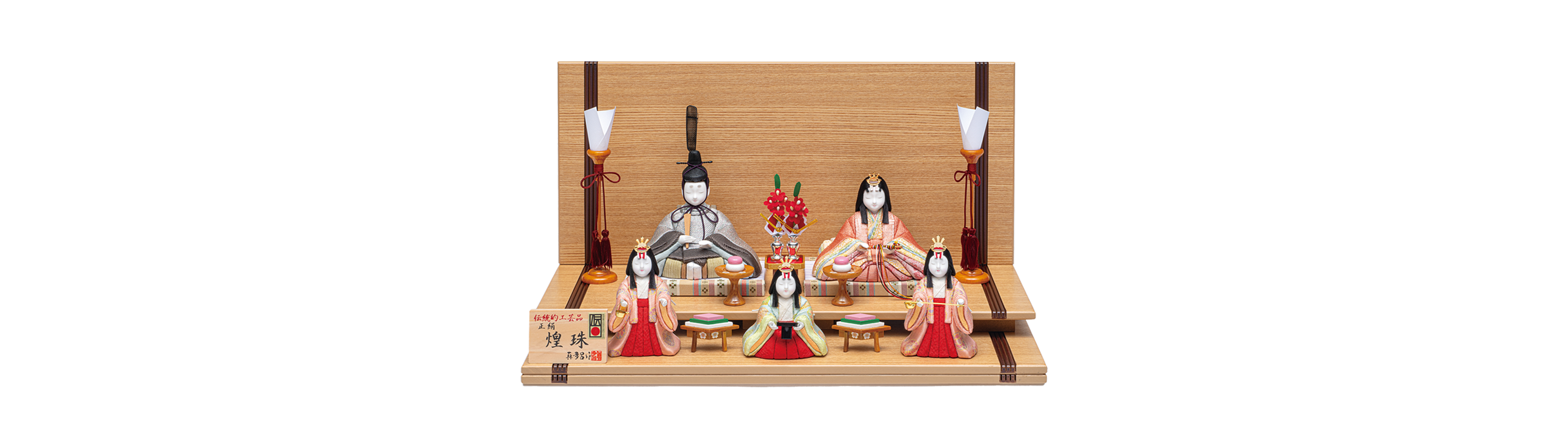 伝統的な技法に、現代的な感性を加えた新しい形の雛人形。和室はもちろん、モダンな洋室のインテリアにも美しく調和する一揃いです。