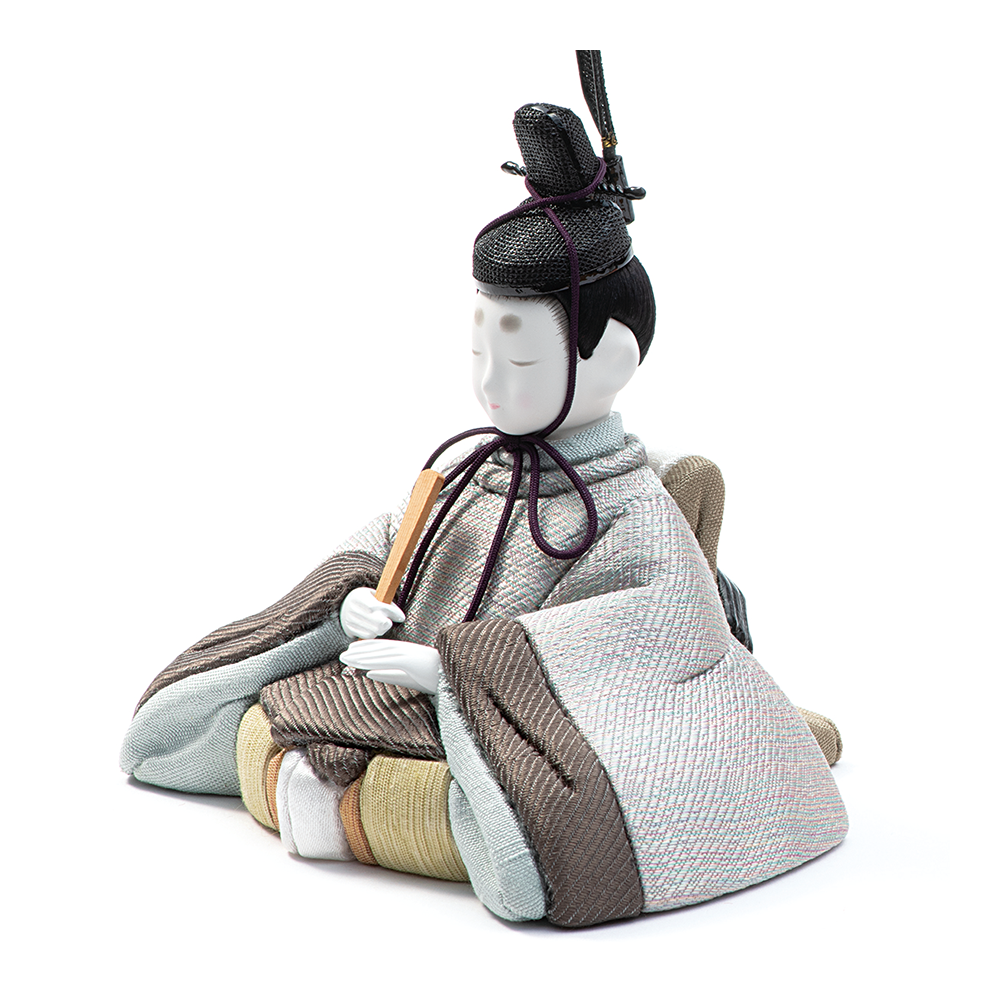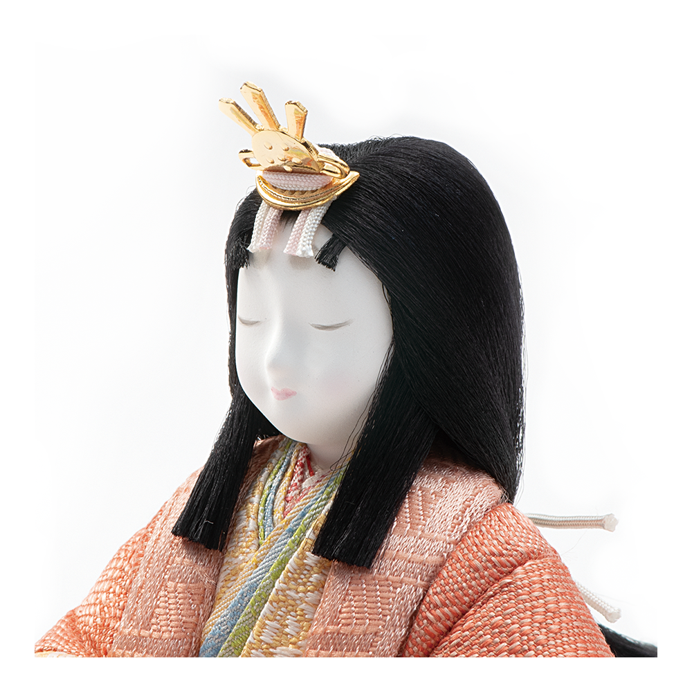 このお雛様の最大の特徴は、あえて柄を排した無地のお衣裳。最高級の正絹(しょうけん)だけが持つ、しっとりとした柔らかな光沢感、そして素材そのものの美しさが際立ちます。シンプルだからこそ伝わる、本物の上質さをご堪能ください。