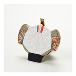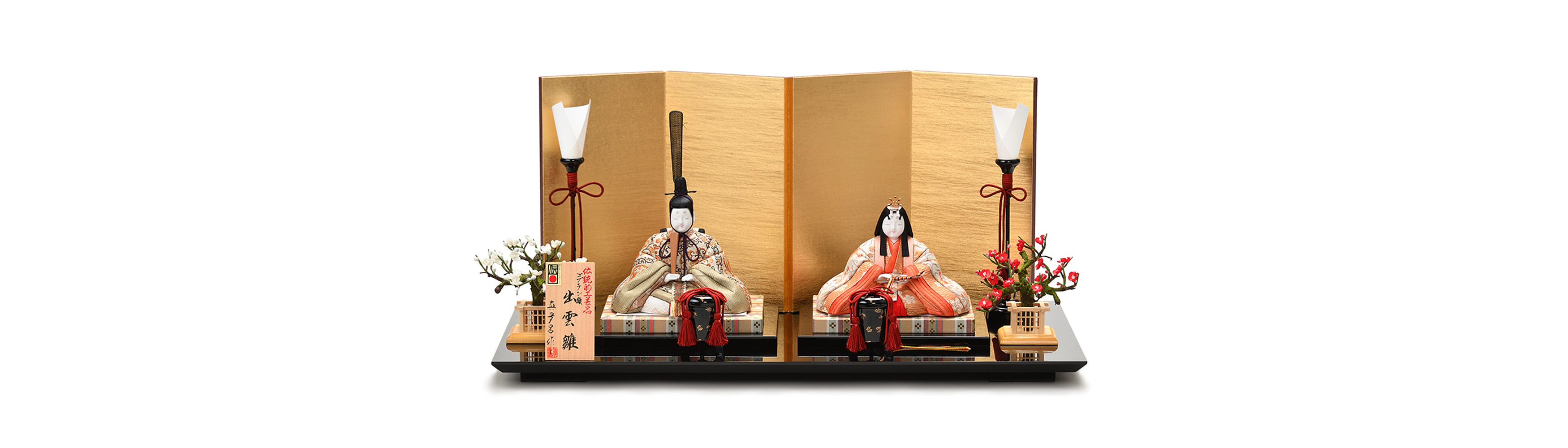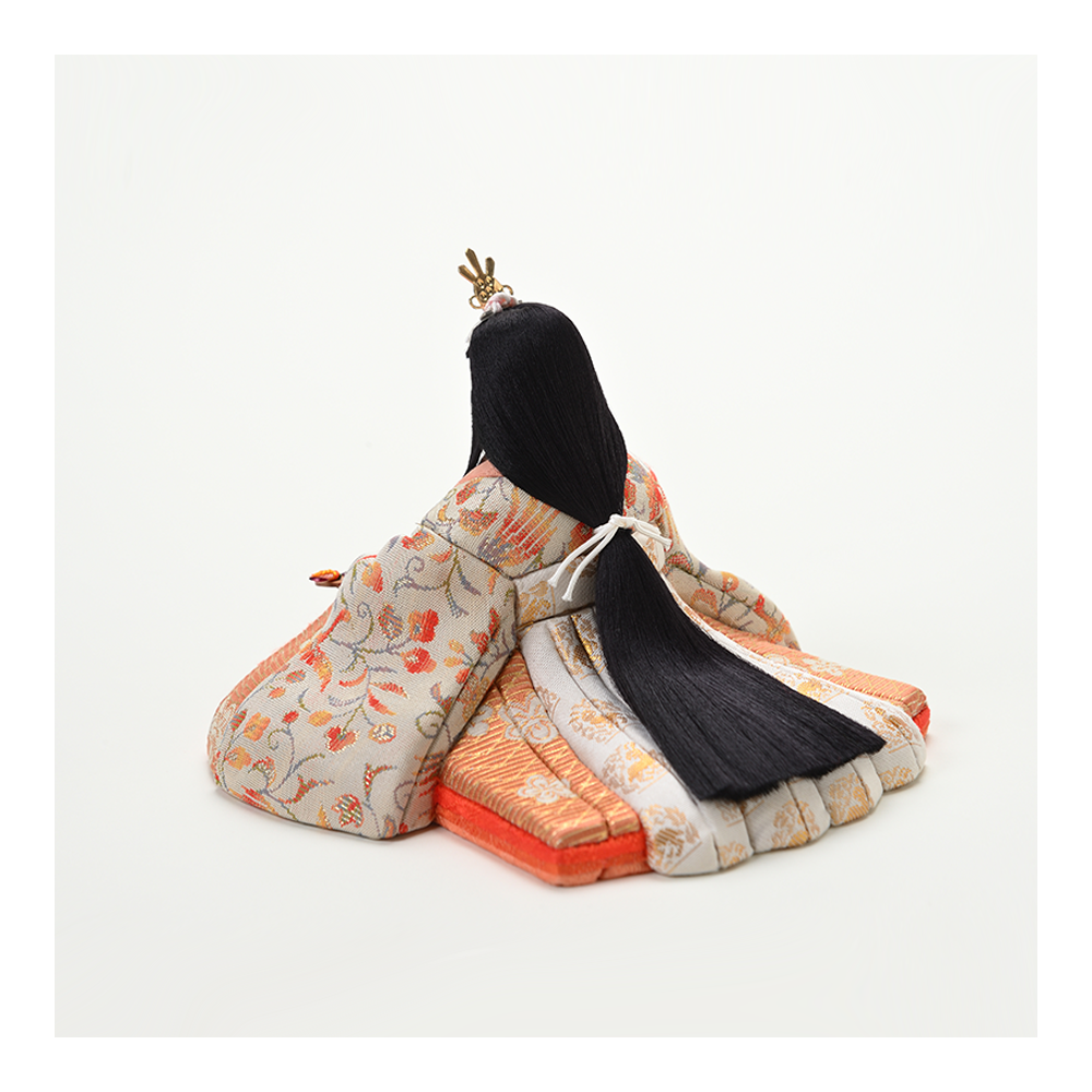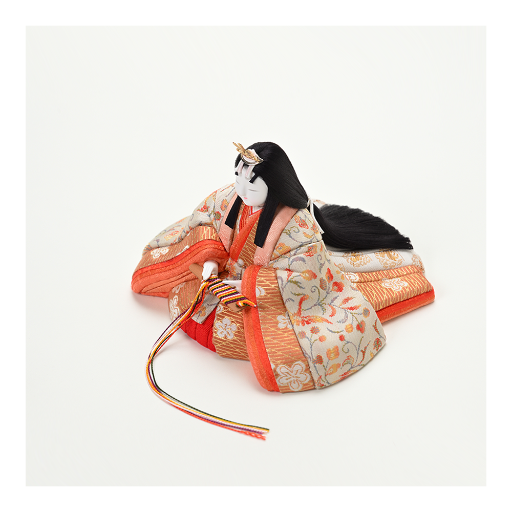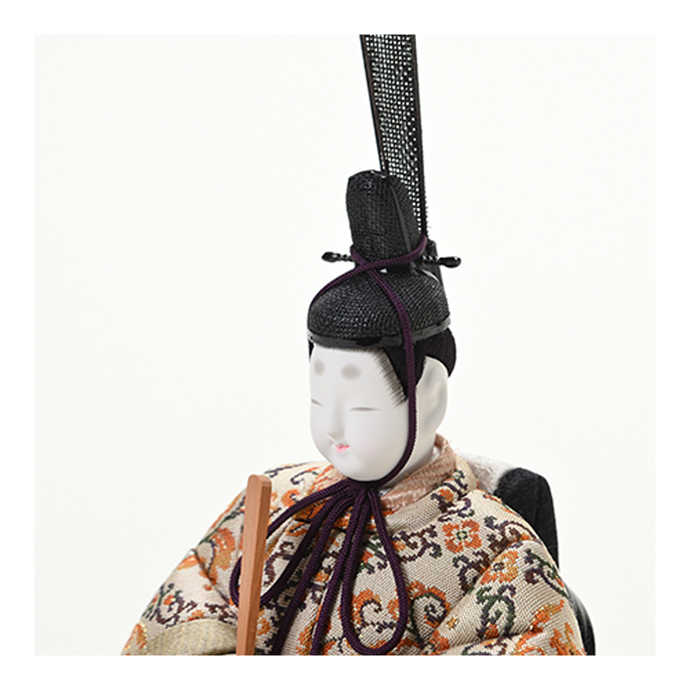 真多呂らしい描き目の気品がある 優しいお顔が魅力のお人形。 独特な柄が特徴のゴブラン織の お衣裳をまとい西陣織とはまた違った 趣を感じられる、素敵な雛人形。
