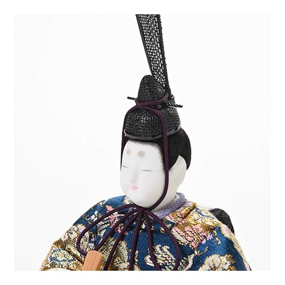 真多呂人形ならではの、ふっくらとして優しく品のあるお顔立ち。コンパクトなサイズながら、伝統的工芸品の風格をしっかりと備えた「天宝雛」
