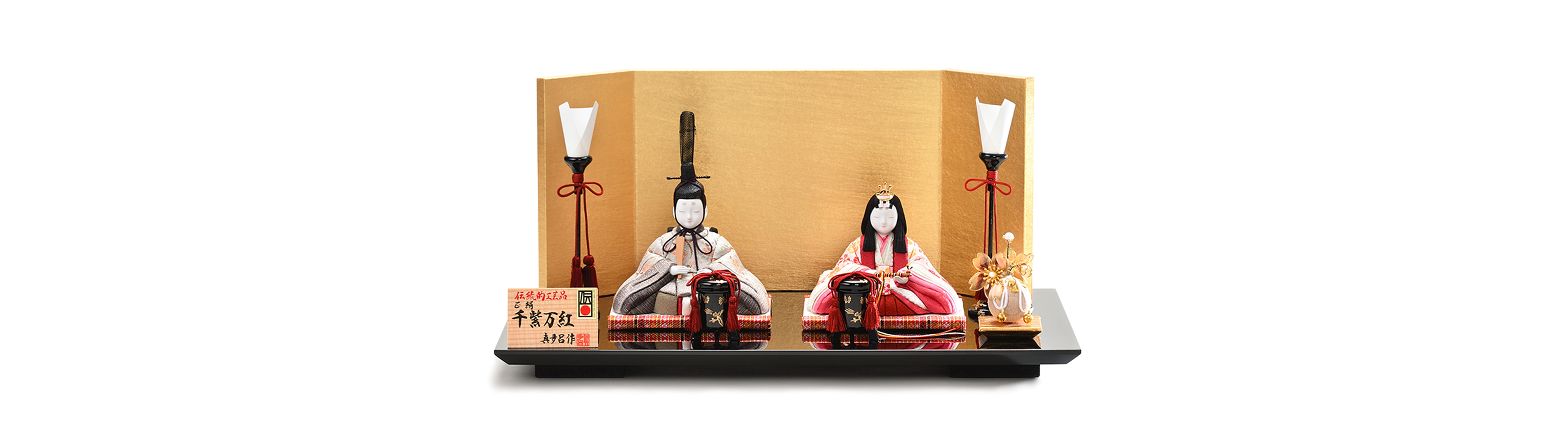 「千紫万紅」シリーズは、色とりどりの花柄衣裳をまとった親王雛をご用意しました。真多呂人形が自ら京都の織物屋と協力し、12種類の美しい花柄の布を制作。誕生月だけでなく、お好みの花柄をお選びいただけます。こだわり抜いた色彩豊かなお雛様を、ぜひお手元に。